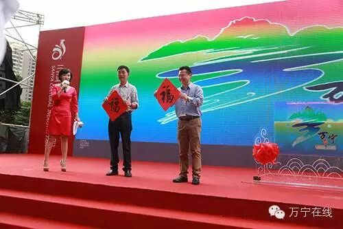 ↑参会嘉宾现场为万宁城市形象LOGO发布接“福”。 新华社“大美万宁”客户端 朱文摄