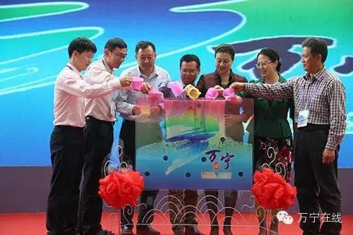 ↑中共万宁市委书记张美文,海南省文联主席张萍,中共三亚市委常委、宣传部长孙苏,海南省商务厅副厅长王克强,海南省旅游委副主任周平,万宁市人大常委会主任、党组书记符海宁等嘉宾,在现场为万宁城市形象LOGO揭幕。 新华社“大美万宁”客户端 朱文摄